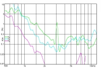 Klirrfaktorfrequenzgang des Harwood-Hochtöners RT-2s ein zweites Mal verewigt. Der richtige Kurvenverlauf zeigt über den gesamten Frequenzbereich einen relativ