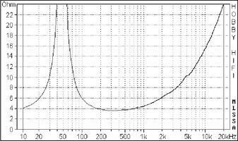 abgebildete Klirrschrieb gehört zum Visaton TI 100 inverse (aus HH 6/08). Hier ist die Impedanzkurve: